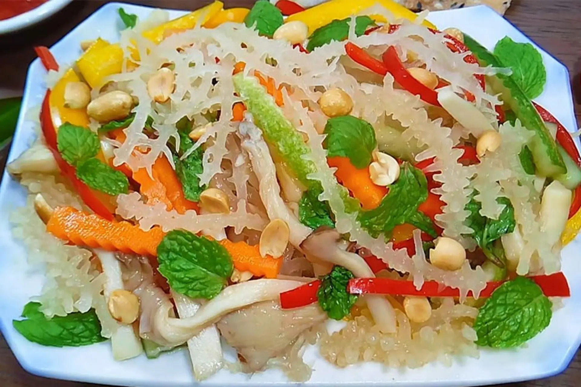 Công thức rong sụn làm gỏi này mang đến món ăn vừa giòn dai vừa đậm đà, thích hợp cho cả bữa chay lẫn bữa ăn gia đình thường ngày. Một chút vị chua ngọt xen lẫn hương thơm của rau và đậu phộng khiến món gỏi trở nên đặc biệt hấp dẫn.