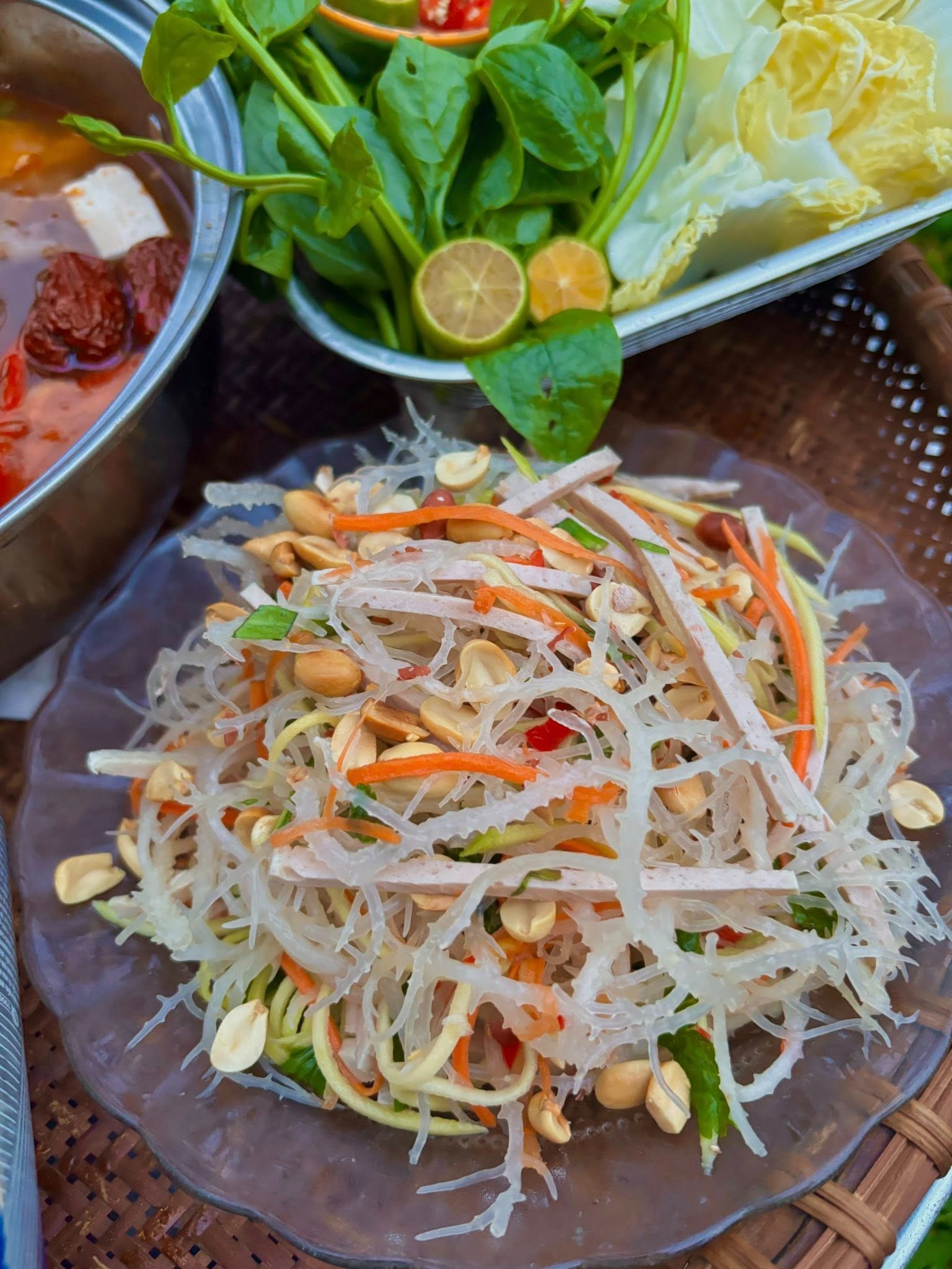 Rau củ ăn kèm cũng cần tươi, giòn và cắt sợi mảnh vừa phải để thấm đều nước trộn. Những loại rau thơm như húng quế, ngò rí hay rau răm không chỉ tăng hương vị mà còn giúp món gỏi thêm mát lành và bắt mắt.