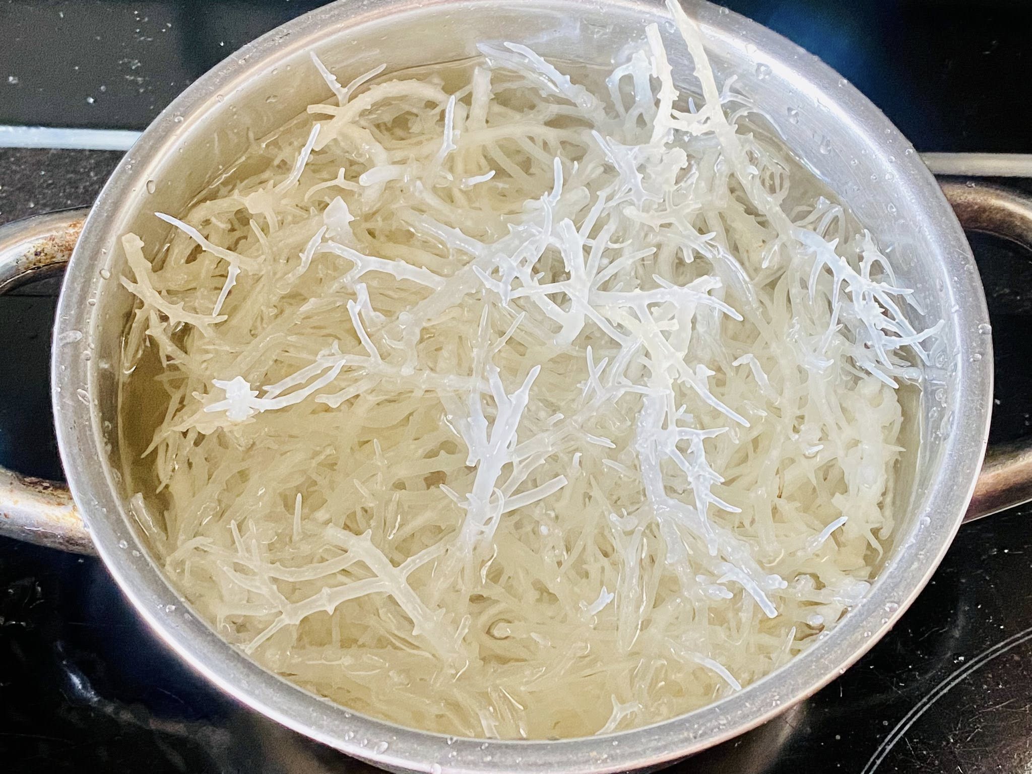 - Bước 2: Đun sôi cho đến khi rong nhả ra chất keo tự nhiên.