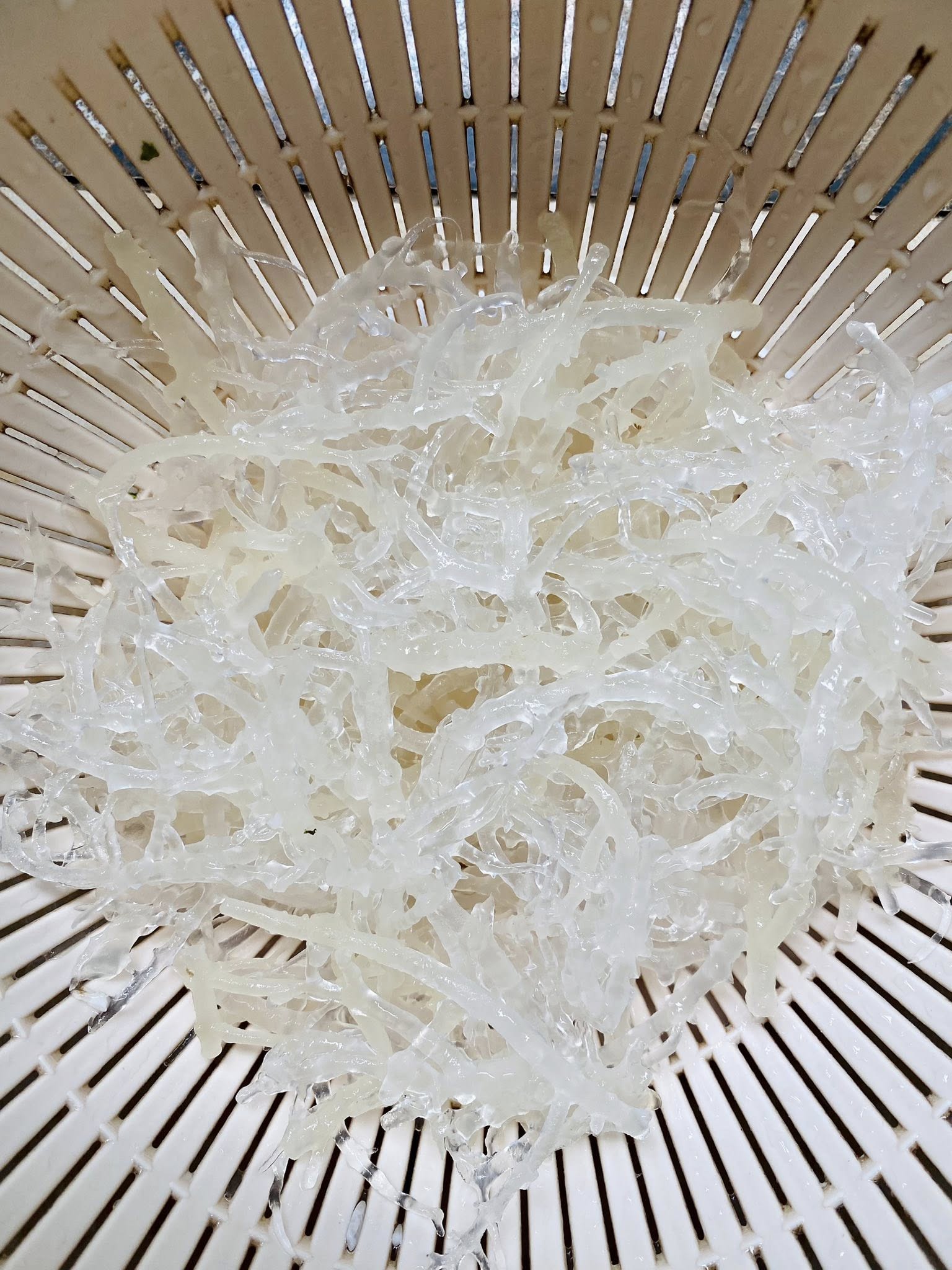 Khi sử dụng, bạn chỉ cần ngâm rong trong nước sạch khoảng 1 tiếng là rong sẽ nở đều, mềm giòn tự nhiên. Một số loại rong sụn khô chất lượng cao đã được rửa sạch muối trước khi phơi, nên khi ngâm không cần thay nước nhiều lần, chỉ còn vị mặn nhẹ rất dễ chịu.