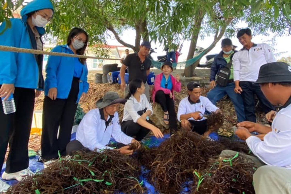 Workers harvest sea moss to produce carragenan at Lam Hong's facility.
