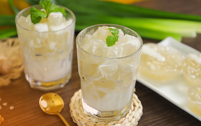 Hình 3: Món rau câu chân vịt sẽ thêm ngon miệng khi ăn cùng nước cốt dừa