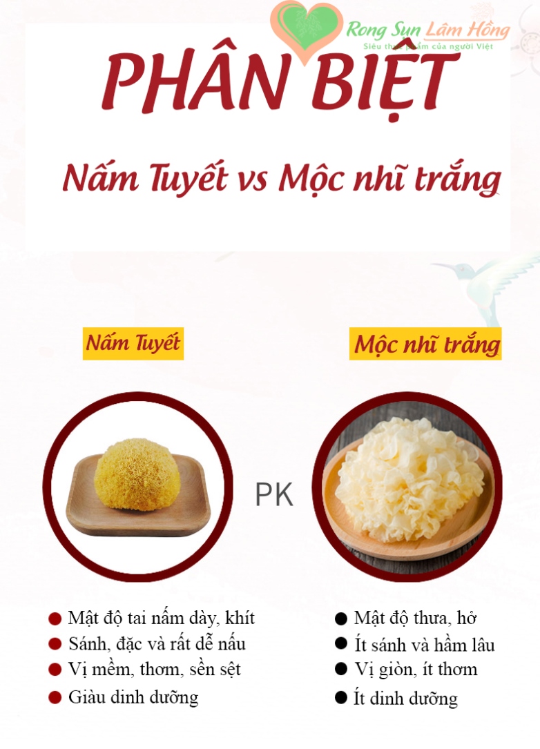 So sánh sự khác nhau giữa ngân nhĩ và nấm mộc nhĩ trắng