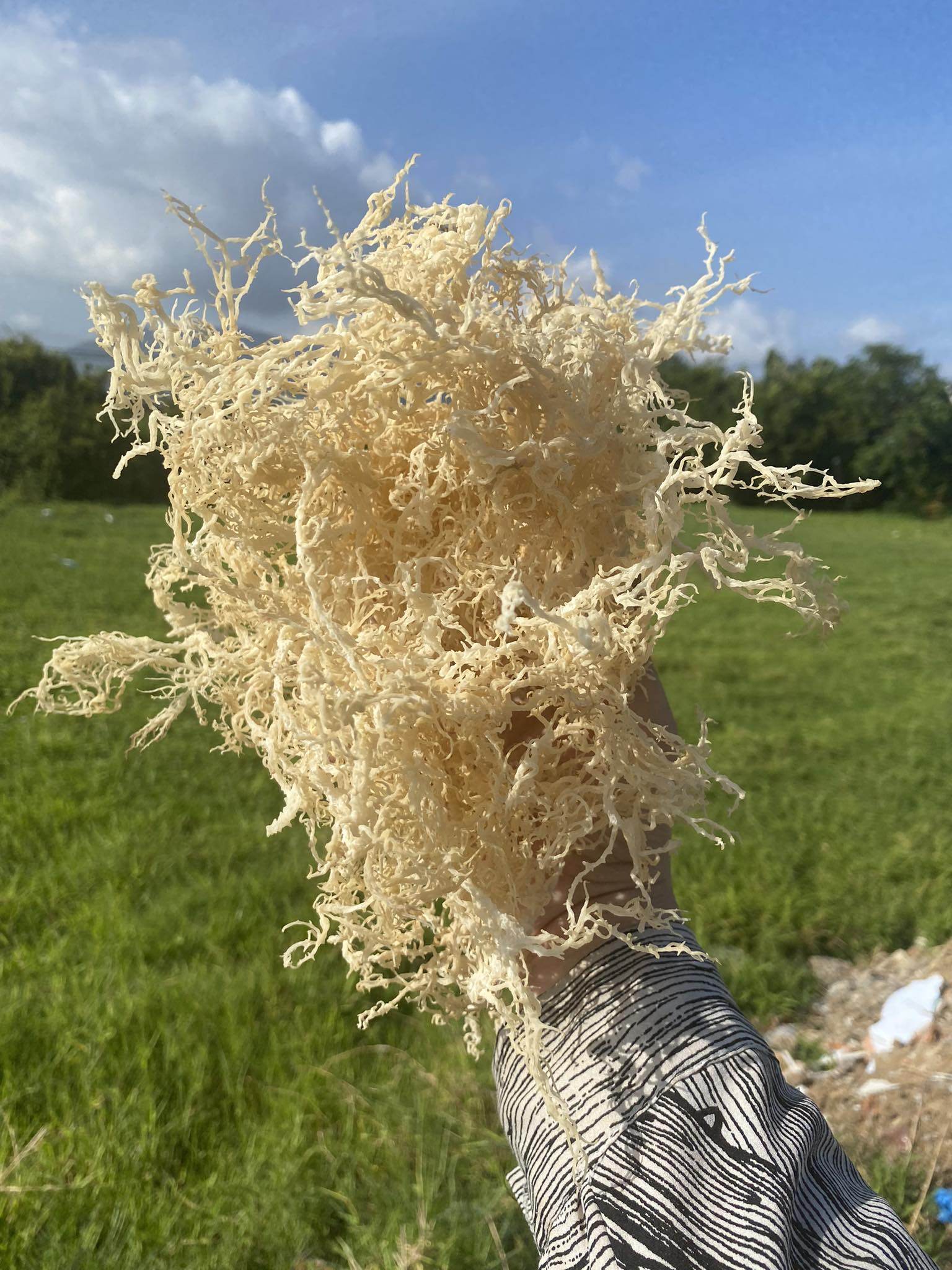 Rong sụn khô sấy được chúng tôi giặt sạch bằng 3 lần nước ngọt trong đất liền, nhặt sạch các tạp chất và loại bỏ 90% lượng muối có trong rong sụn tươi, sau đó mang đi phơi 7 nắng cho đến khi rong khô hẳn như được sấy.