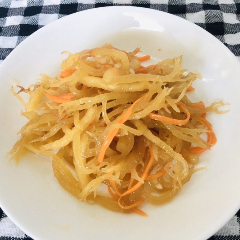- Rửa rong sụn dưới vòi nước đến khi loại bỏ hết vị muối mặn.