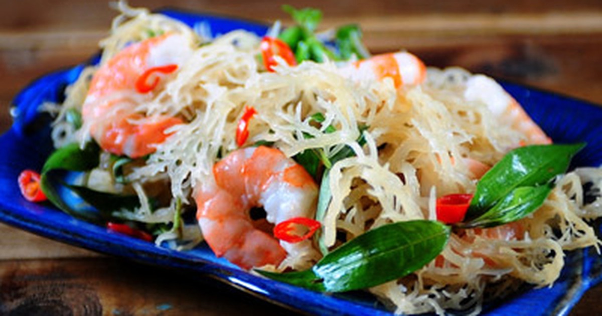 Gỏi tôm rong sụn rất thích hợp đãi bạn bè (Nguồn ảnh: Internet)