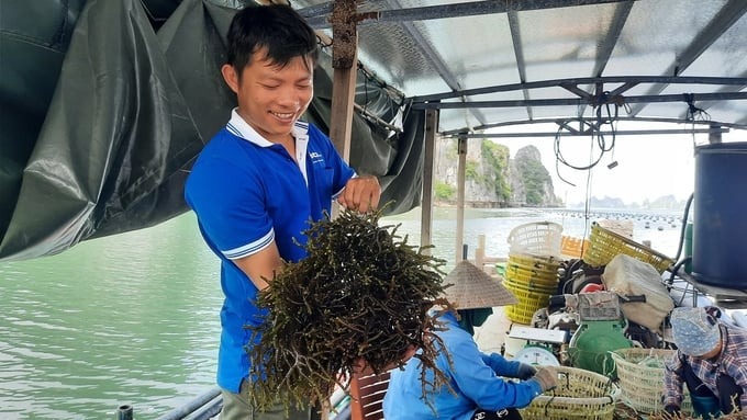 A Vietnamese farmer is happy with his quality sea moss harvest.